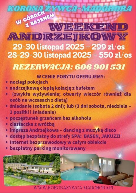 Weekend Andrzejkowy Andrzejki od 299zł /28 lub 29-30.11 Korona Żywca-Madohora - w Ślemieniu koło Żywca ! 29-30 ...